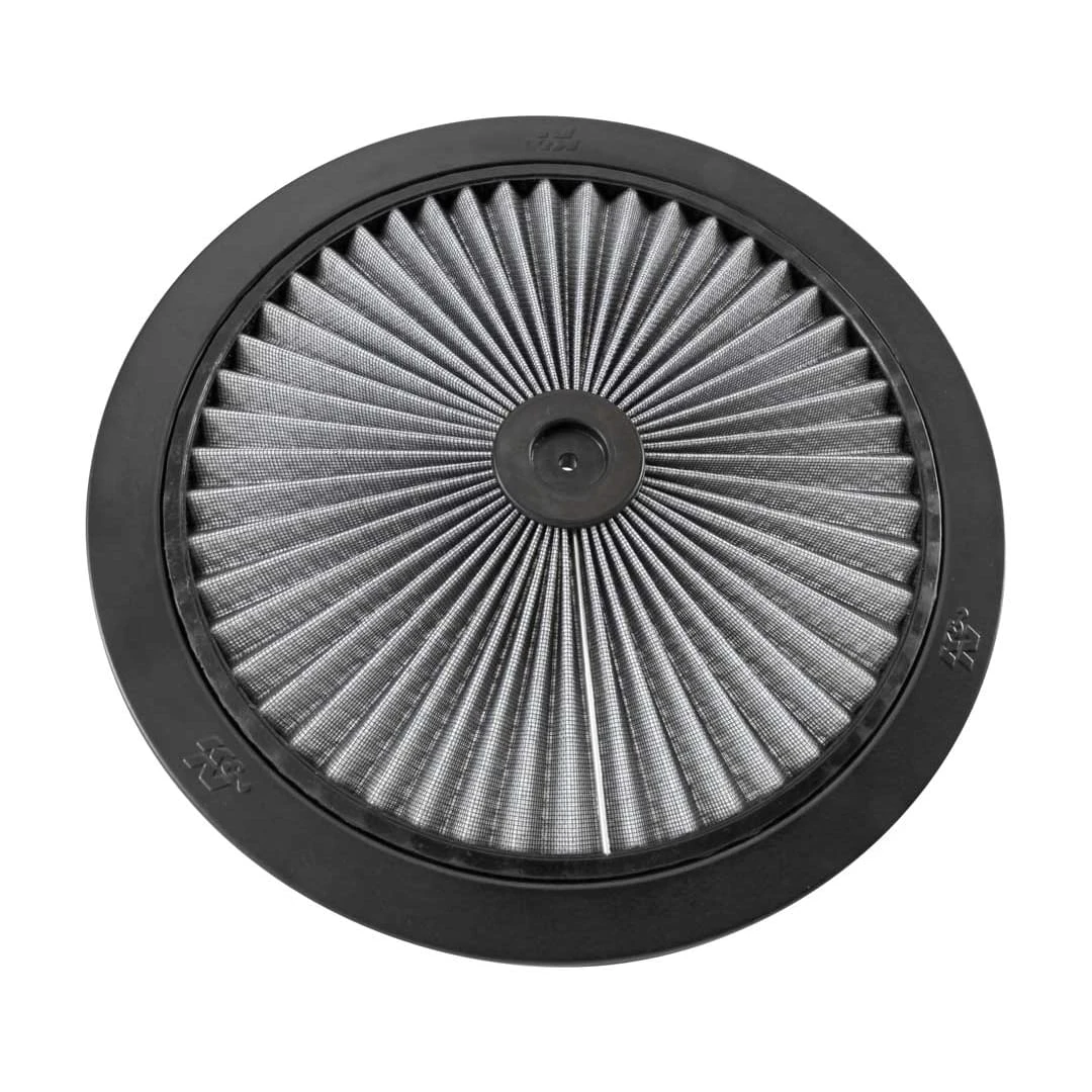 K&N XStream Air Flow Tops replace the top of your existing round filter thereby adding additional filter surface area for increased air flow. The addition also redirects the air flow inside the filter to pull in more air for even greater performance efficiency. Cleanable and reusable, the XStream Air Flow Top filter delivers the best protection available for your engine, and comes in a wide range of applications. This filter top has a 14 inch outside diameter featuring durable black powder coated trim with K&N logos embossed around the rim.
