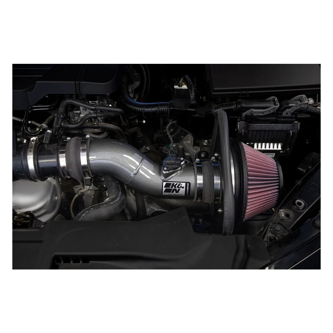 Gain a guaranteed increase in horsepower and torque with a K&N® cold air intake system featuring a mandrel-bent aluminum intake tube. Each system is paired with a washable, reusable High-Flow Air Filter™ featuring oiled cotton filter media. The oversized, conical filter design allows you to go up to 100,000 miles between filter services under normal highway driving conditions. A custom heat shield or air box helps protect intake air from the high temperature of your engine bay, and the entire system can typically be installed in less than 60 minutes. Some intakes are not legal for sale or use on any pollution controlled motor vehicle in California. See the product specifications for CARB status on each part for a specific vehicle.