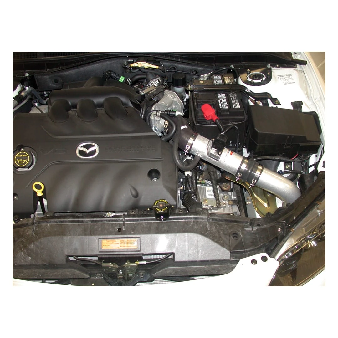 The K&N 69-6026TS Typhoon cold-air intake system is a free-flowing, mandrel-bent aluminum tube air induction system designed to fit some Mazda 6 models. The restrictive factory air filter and air intake housing are replaced by the K&N Typhoon cold-air intake which is designed to pull in relatively cooler air and dramatically reduce air flow restriction by smoothing and straightening air flow. This allows your engine to inhale a larger amount of denser air than the factory air intake. More air means more usable power and acceleration throughout the engine’s RPM range. The 69-6026TS cold-air intake consists of a black rubber topped K&N high-flow air filter that mounts near the driver side wheel well directing cooler outside air through free-flowing aluminum tubing into a short ram induction tube that delivers high volumes of clean, colder air into the engine’s throttle body for a guaranteed power gain. The oversized cone shaped air filter comes with a black water-repellent DryCharger filter wrap to protect the filter from moisture. The air filter can be used for up to 100,000 miles before servicing is needed depending on driving conditions. This cold air intake is relatively easy to install usually in 90 minutes or less. Some Typhoon air intakes are not legal for sale or use in California or other states adopting California emission standards while others are CARB exempt and 50 state legal. Check the vehicle applications and specific CARB status for each vehicle and air intake.