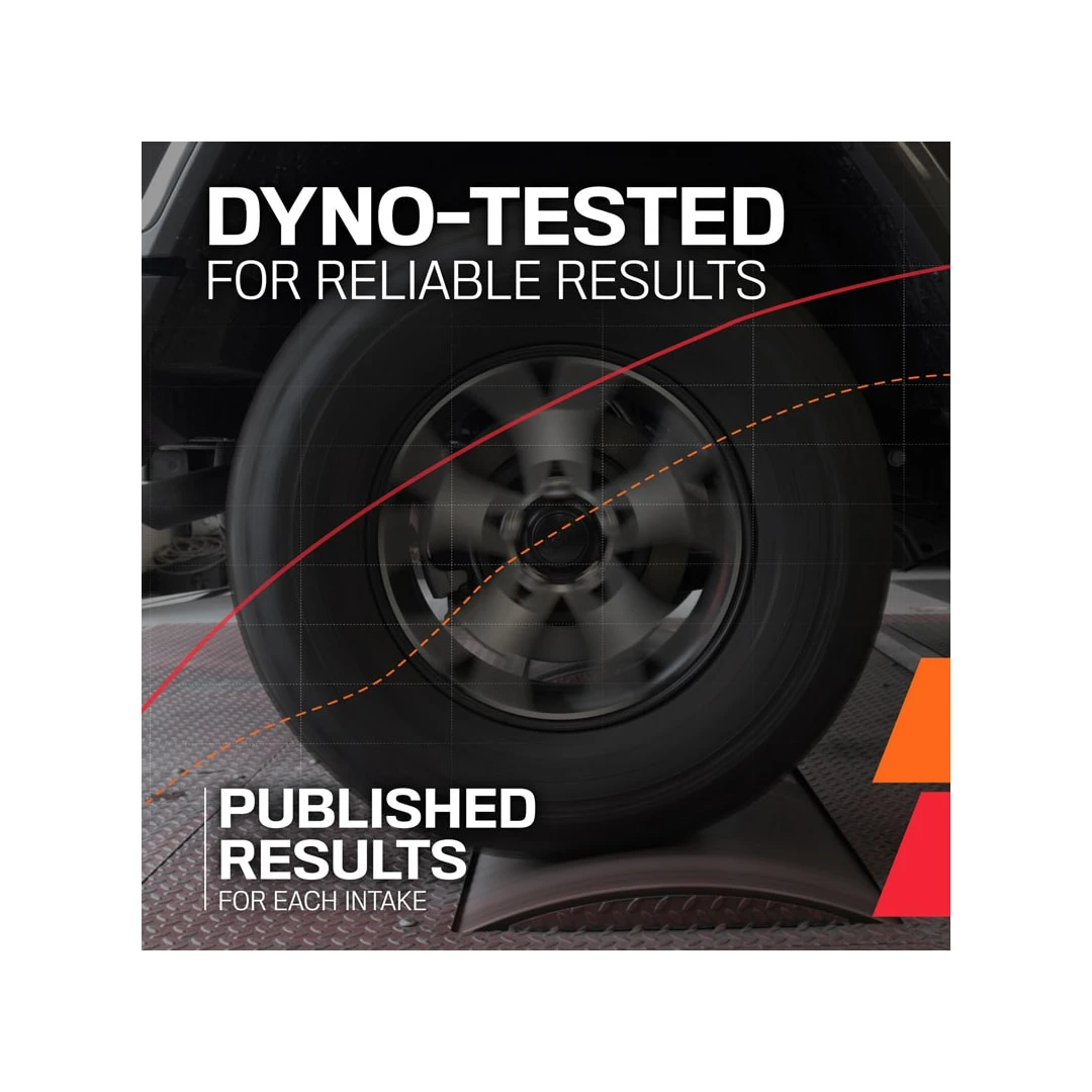 - Powder-coated aluminum intake tube paired with dry synthetic air filter