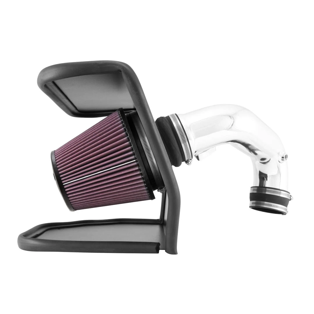 Gain a guaranteed increase in horsepower and torque with a K&N® cold air intake system featuring a mandrel-bent aluminum intake tube. Each system is paired with a washable, reusable High-Flow Air Filter™ featuring oiled cotton filter media. The oversized, conical filter design allows you to go up to 100,000 miles between filter services under normal highway driving conditions. A custom heat shield or air box helps protect intake air from the high temperature of your engine bay, and the entire system can typically be installed in less than 60 minutes. Some intakes are not legal for sale or use on any pollution controlled motor vehicle in California. See the product specifications for CARB status on each part for a specific vehicle.
