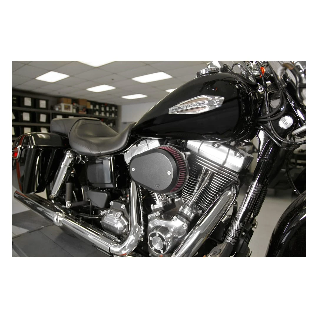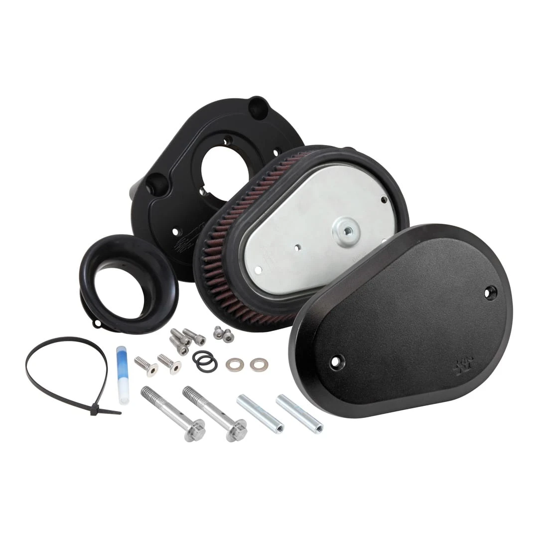 K&N’s Street Metal Series High-Flow Air Intake Systems provide attractive styling, offer increased airflow and deliver more horsepower & torque to your Harley-Davidson motorcycle. These air intake systems eliminate the stock OE air cleaner and replace it with a complete high-flow air intake system to increase power. The sturdy custom aluminum backing plate mounts directly to the throttle body via an aluminum integrated, internal-run breather system. The air intake system comes with a K&N Air Filter for high air flow and long service intervals. The K&N air filter is washable, reusable, pre-oiled and ready for installation. To help absorb vibration, a durable mounting gasket is also included. A custom black powder coated aluminum flare-shaped cover gives this air intake good looks while your bike is powering down the highway or at your local show.