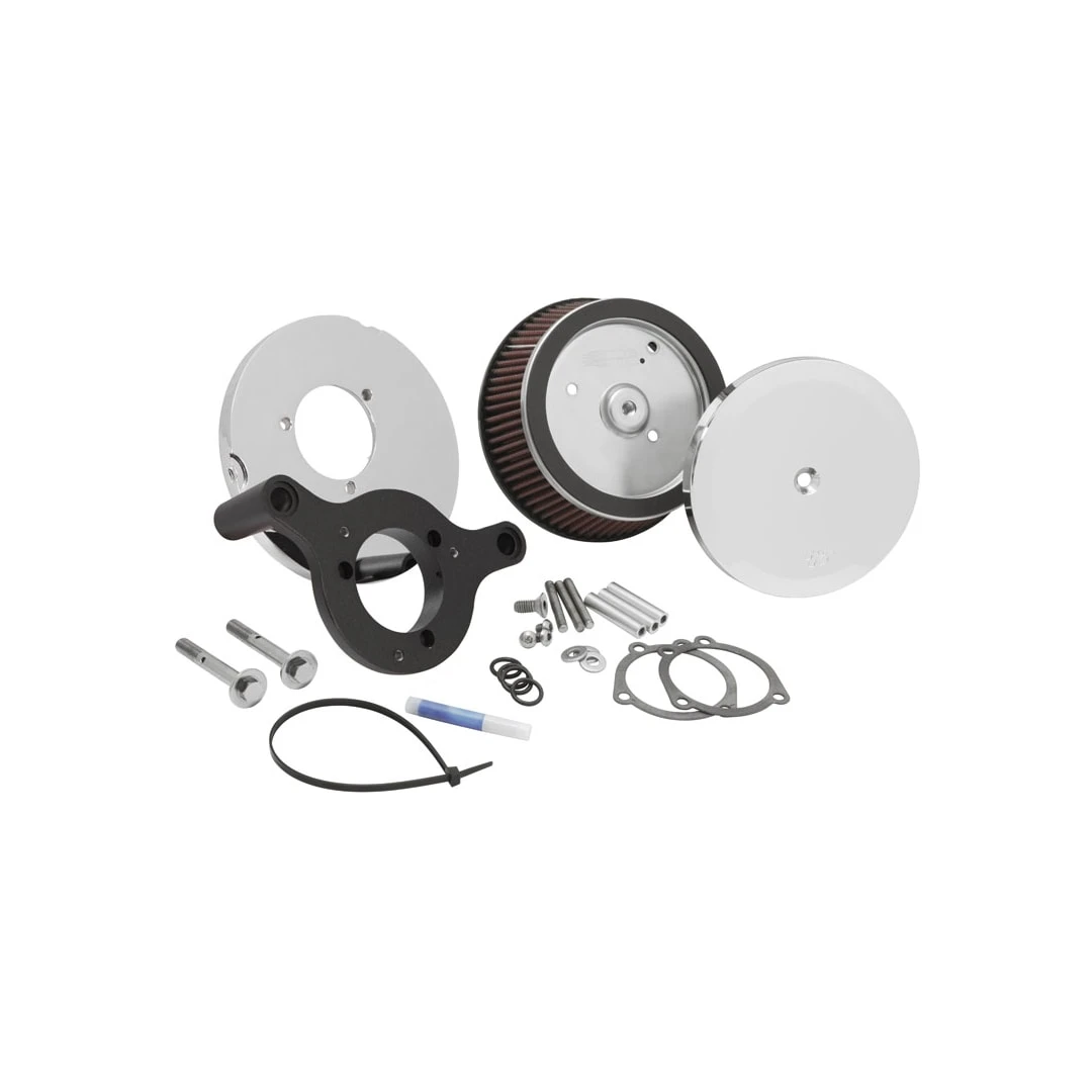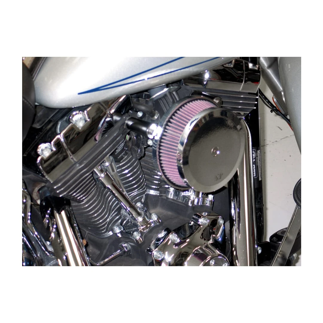 K&N’s Street Metal Series High-Flow Air Intake Systems provide attractive styling, offer increased airflow and deliver more horsepower & torque to your Harley-Davidson motorcycle. These air intake systems eliminate the stock OE air cleaner and replace it with a complete high-flow air intake system to increase power. The sturdy, custom aluminum backing plate mounts directly to the throttle body via an aluminum integrated, internal-run breather system. The air intake system comes with a K&N Air Filter for high air flow and long service intervals. The K&N air filter is washable, reusable, pre-oiled and ready for installation. To help absorb vibration, a durable mounting gasket is also included. A beautiful chromed round custom cover gives this air intake classic elegance, perfect for the garage queen or road warrior alike.