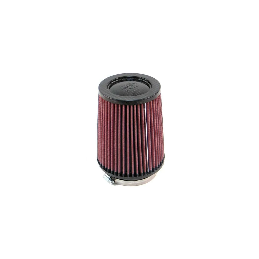The RP-4630 Universal Air Filter is constructed from an oiled cotton filter media. It comes with a K&N embossed carbon fiber top for strength and durability. The carbon fiber element adds to the light-weight design and gives this filter a smooth glass like finish. The RP-4630 is a clamp-on filter that has an inside flange diameter of 3-1/2 inches and a flange length of 1-1/4 inches. The base diameter is 5-1/2 inches, the top diameter is 4-1/2 inches and the filter height is 6-1/2 inches.