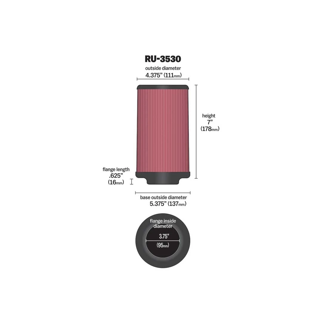 K&N’s Universal Air Filters are designed and manufactured for a wide variety of applications including racing vehicles, radio-controlled cars, generators, snowmobiles, tractors, and other applications. Regardless of the angle or offset diameter of the air intake, there is probably a K&N Universal air filter for your equipment. All filters are constructed with ultra-strong molded pliable rubber flanges which absorb vibration and allow for secure attachment and can also be stretched for up to 1/16 of an inch (1.5mm) to fit in-between sizes. K&N universal air filters are washable and reusable.